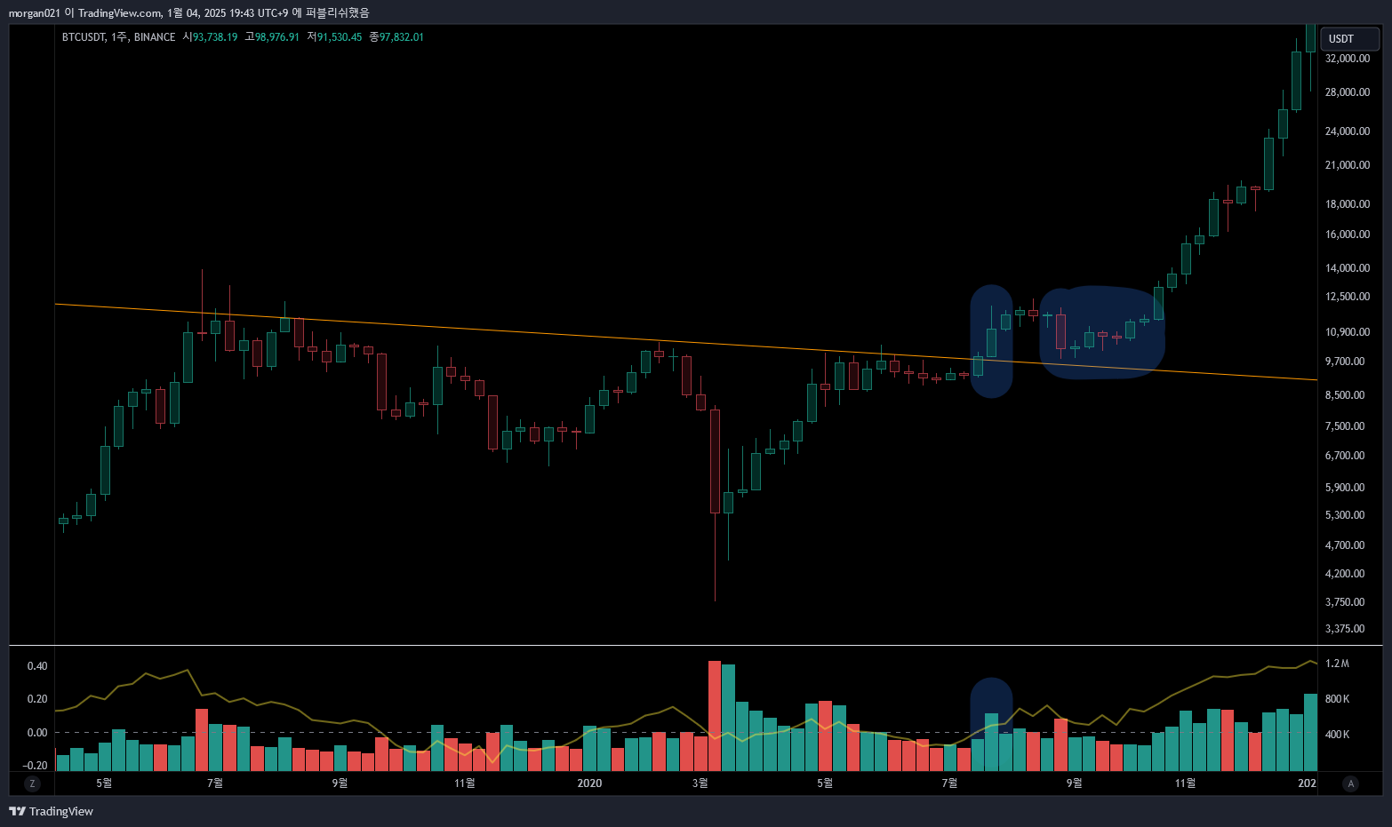 - 거래량 폭발 : 돌파 구간에서 거래량이 크게 증가하면 이미 많은 참여자가 포지션을 잡아 리테스트 없이 추세가 지속되기도 합니다.