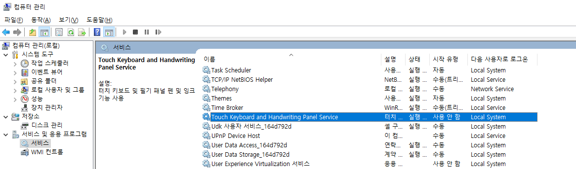 - 서비스 목록에서 Touch Keyboard and Handwriting Panel Service를 찾습니다.