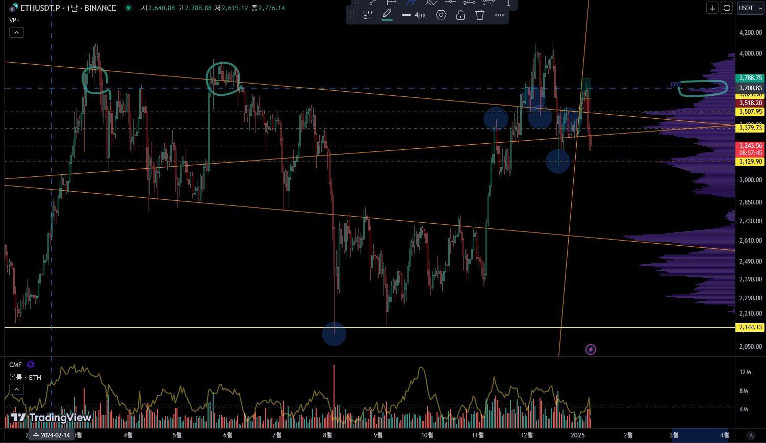 혹시 몰라서 관련 보조지표를 하나 꺼내보니 해당 부분만 볼록 튀어나와 있다. 주요 저항일 가능성이 높다는 의미인데 평소에는 굳이 안 보더라도 켜두는 것도 나쁘지 않다 싶다. 재검토할 기회를 주니까.