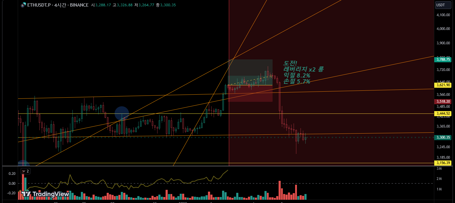 작은 저항을 이기고 상위의 조금 더 큰 저항을 이기는 경우 좋게 흘러가는 경우를 많이 보았다. 그래서 역시 이번에도 좋을 것으로 생각각하고 롱으로 진입하였다.