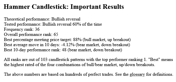 - Hammer: 이론상 강세 반전, 실측 반전 성공률 60%