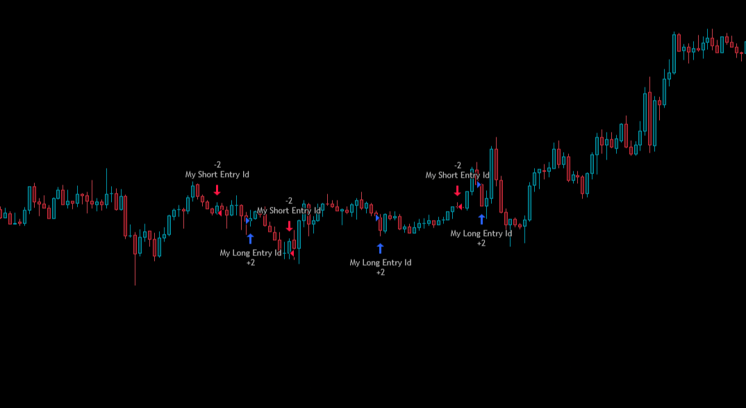 코드로 일정한 규칙을 작성해 두고 표시하게 지시하면 위 그림과 같이 언제 사고 팔지를 표시할 수도 있다.