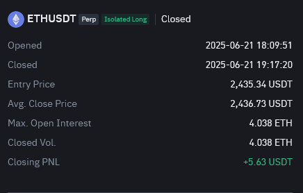 결국 진입가보다 살짝 높인 손절가 부근에서 포지션을 종료.